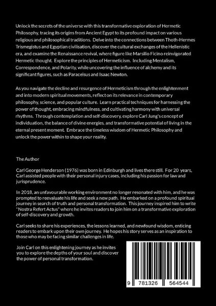 Unlock the mysteries of universal harmony through the Principle of Correspondence and explore the interconnectedness of all things. Discover the vibrational nature of the universe and its influence on mental states and the Law of Attraction. Find balance in your emotions, relationships, and spiritual journey by embracing the dance of opposites and the principle of Polarity. Embrace the rhythmic nature of life, trust the flow, and practice mindfulness to live in harmony with the universal rhythm. Unveil the mysteries of universal law through the Principle of Cause and Effect, taking responsibility for your actions, setting goals, and practicing gratitude to create positive change in your life. Delve into the symbolic meaning of gender and the balance of the divine masculine and feminine. Embody both energies, foster healthy relationships, and develop your intuition. Discover Carl Jung's concept of individuation and its significance in the context of Hermetic philosophy, exploring the path of self-realisation and integration of the unconscious. Learn the art of contemplation and meditation as tools for self-discovery and spiritual growth, cultivating inner stillness and connecting with the divine within. Reflect on the concept of becoming and the timeless nature of existence through the lens of Hermetic philosophy. Embrace the eternal present moment and transcend the limitations of time. Embark on this enlightening journey and embrace the timeless wisdom of Hermetic Philosophy. Uncover the power within yourself to shape your reality and connect with the harmonious rhythms of the universe.