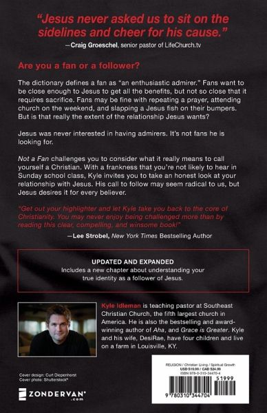 This expanded and updated version of Not a Fan adds a new introduction and a new chapter to this mega bestseller. If Jesus were to sit down with you right now and have a DTR (Define the Relationship) conversation, how would you respond? Not a Fan invites you to make Jesus not merely the object of your admiration, but the very center of your life.
