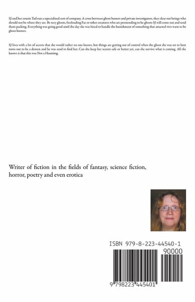 SJ and her cousin Tad run a sspecialized sort of company. A cross between ghost busters and private investigators, they clear out beings who should not be where they are. Be teey ghosts, freeloading Fae or other creatures who are pretnending to be ghosts SJ will come out and send them packing. Everything was going good until the day she was hired to handle the banishment of something that attacted two want to be ghost busters. SJ lives with a lot of secrets that she would rather no one knows, but things are getting out of control when the ghost she was set to bust turns out to be a demon and he was send to find her. Can she keep her secrets safe or better yet, can she survive what is coming. All she knows is that this was Not a Haunting.
