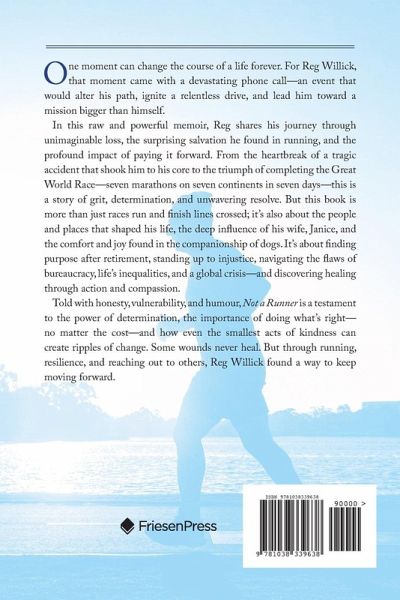 Reg Willick is a retired business owner and lifelong builder-both in construction and in life. He took up running at fifty, spurred by tragedy, a health scare, and the urging of his wife, Janice, proving it's never too late to embrace new challenges. A seasoned world traveller, Reg has lived in three countries, collecting a lifetime of experiences-some good, some difficult-that have shaped his perspective. Early doubts from others in both business and life only fueled his determination and strengthened his commitment to paying it forward. Reg is also an aviation enthusiast. He has piloted small aircraft and is drawn to anything that takes to the skies. He thrives on adventure, whether it's pushing himself physically, exploring new places, or seizing life's opportunities. His philosophy is simple: don't wait-do it now. Take the trip, make the memories, and live with no regrets. And if you ever meet him, you'll quickly discover his gift of gab, sharp wit, and just the right twist of humour to keep things interesting. Reg now divides his time between summers in Vancouver, British Columbia, and winters in Indio, California, alongside Janice, his wife of forty-two years, and their two teacup Maltese, Jabori and Jasiri.