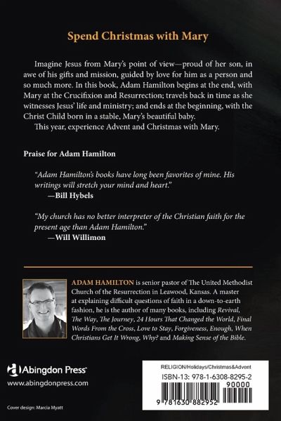 Large Print Edition. Imagine Jesus from Mary's point-of-view--proud of her son, in awe of his gifts and mission, guided by love for him as a person and so much more. In this book, Adam Hamilton begins at the end, with Mary at the crucifixion and resurrection; travels back in time as she witnesses his life and ministry; and ends at the beginning, with the Christ child born in a stable, Mary's beautiful baby. This year, experience Advent and Christmas with Mary. The five sessions are: 1. Beginning with the End 2. The Piercing of Mary's Soul 3. Amazed, Astounded, and Astonished 4. Mary, Full of Grace 5. It Was Not a Silent Night