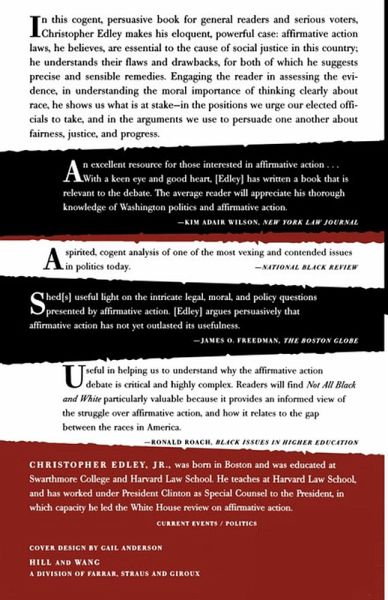 Rejecting simplistic left-right arguments, Christopher Edley, Jr., offers a cogent and persuasive analysis of one of the most contended issues in politics today. He makes the powerful argument that affirmative-action laws are essential to social justice in this country, though they have flaws and drawbacks (for both of which he suggests precise and sensible remedies). He shows us what is at stake in the positions our elected officials take and in the arguments we make about fairness, justice, and progress.