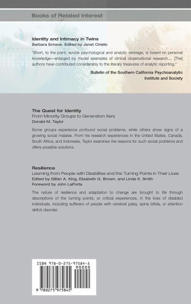 Even twins are unique. Most people idealize twins, fantasizing a close, perpetually loving relationship. Yet Klein, herself an identical twin, demonstrates that twins have complicated and intense relationships that range from over-identification or excessive closeness to profound estrangement and conflict. Most twins who are raised as individuals deal with the significant emotional pain of separation in adolescence or young adulthood, yet as mature adults can come to love and respect each other as individuals. As Klein makes clear, the parenting that twins receive as infants and young children affects the relationships that they have with one another and with the world they choose to function in. Because parenting is a critical determinant of psychological well-being, it should be treated as a serious but manageable challenge. This book is a must-read for twins, their parents, and scholars, students, and other researchers and professionals dealing with mental health and child development.