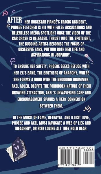 Passion, danger, and a love that hits all the right notes-will they survive the spotlight and the shadows? ¿After the video of her rockstar fiancé's tragic car crash is released, Phoebe Fletcher is hit with false accusations. Thrust into the relentless media spotlight, the budding artist becomes the focus of obsessive fans, putting both her life and aspirations in jeopardy.Phoebe seeks refuge with her ex's band, the Brothers of Anarchy, where she forms a bond with the brooding drummer, Axel Adler. She knows fans will tear her apart if she moves on too fast, but Axel's wavering care and encouragement sparks a fiery connection between them.In the midst of fame, betrayal, and illicit love, Phoebe and Axel must navigate a web of lies and treachery, or risk losing all they hold dear. ¿ Tropes & Themes Drummer X Artist Ex's Best Friend Brother's Best Friend He Falls First Stalking Living With The Band ¿ Readers! Please note: this is an adult romantic suspense with mature content and not suitable for those under 18. Guaranteed HEA. Content Warning On The Copyright Page.