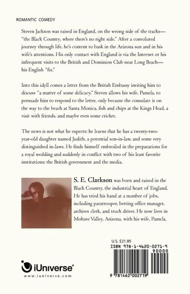 Steven Jackson was raised in England, on the wrong side of the tracks-"the Black Country, where there's no right side." After a convoluted journey through life, he's content to bask in the Arizona sun and in his wife's attentions. His only contact with England is via the Internet or his infrequent visits to the British and Dominion Club near Long Beach-his English "fix." Into this idyll comes a letter from the British Embassy inviting him to discuss "a matter of some delicacy." Steven allows his wife, Pamela, to persuade him to respond to the letter, only because the consulate is on the way to the beach at Santa Monica, fish and chips at the Kings Head, a visit with friends, and maybe even some cricket. The news is not what he expects: he learns that he has a twenty-two-year-old daughter named Judith, a potential son-in-law, and some very distinguished in-laws. He finds himself embroiled in the preparations for a royal wedding and suddenly in conflict with two of his least favorite institutions: the British government and the media.