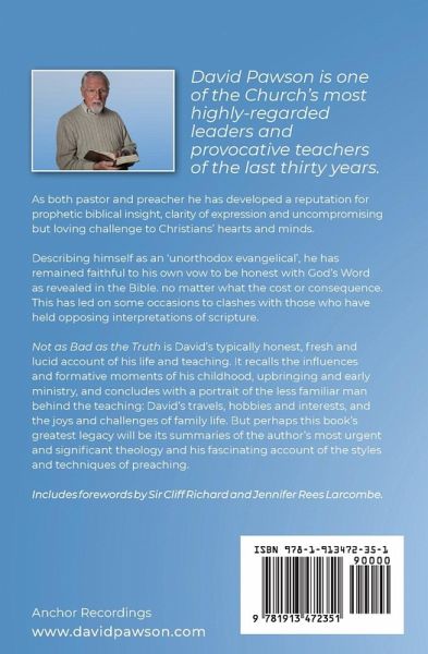 David Pawson is one of the Church's most highly-regarded leaders and provocative teachers of the last thirty years. As both pastor and preacher he has developed a reputation for prophetic biblical insight, clarity of expression and uncompromising but loving challenge to Christians' hearts and minds. Describing himself as an 'unorthodox evangelical', he has remained faithful to his own vow to be honest with God's Word as revealed in the Bible. no matter what the cost or consequence. This has led on some occasions to clashes with those who have held opposing interpretations of scripture. Not as Bad as the Truth is David's typically honest, fresh and lucid account of his life and teaching. It recalls the in¿ uences and formative moments of his childhood, upbringing and early ministry, and concludes with a portrait of the less familiar man behind the teaching: David's travels, hobbies and interests, and the joys and challenges of family life. But perhaps this book's greatest legacy will be its summaries of the author's most urgent and signi¿ cant theology and his fascinating account of the styles and techniques of preaching. Includes forewords by Sir Cliff Richard and Jennifer Rees Larcombe.