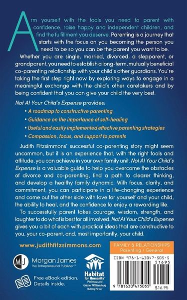 Arm yourself with the tools you need to parent with confidence, raise happy and independent children, and find the fulfillment you deserve. You're getting divorced; you're angry, afraid, frustrated, and overwhelmed. Stop, stop and breathe. What lies ahead is a journey that starts now -- with the focus on you becoming the person you want to be and the parent you need to be. You can get through this and "Not At Your Child's Expense" can help. Do you feel like you'll never laugh again, engage in a meaningful exchange with your former spouse or parent with confidence? You can and you will. You're taking the first step right now by getting the help you need as you navigate through the stages of establishing a long-term, mutually-beneficial co-parenting relationship. Judith Fitzsimmons' successful co-parenting story might seem uncommon, but it is an experience that, with the right tools and attitude, you can achieve in your own family unit. "Not At Your Child's Expense" is a guide to help you overcome the obstacles of divorce and co-parenting, find a path to clearer thinking, and develop a healthy family dynamic. "Not At Your Child's Expense" provides valuable, practical ideas that are constructive to you, your co-parent, and, most importantly, your child. While you may not have expected your life to reach this phase, you do have a choice on how to move forward.