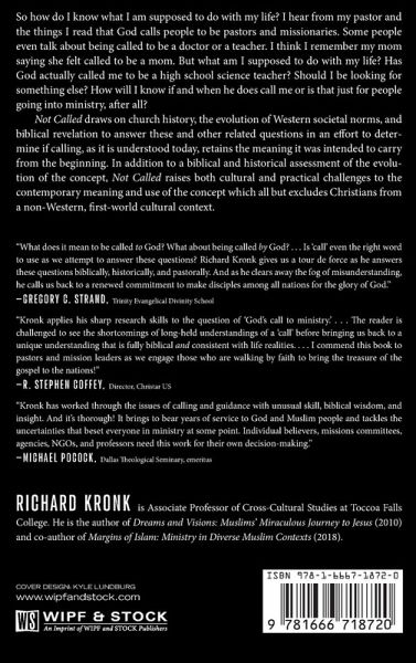 So how do I know what I am supposed to do with my life? I hear from my pastor and the things I read that God calls people to be pastors and missionaries. Some people even talk about being called to be a doctor or a teacher. I think I remember my mom saying she felt called to be a mom. But what am I supposed to do with my life? Has God actually called me to be a high school science teacher? Should I be looking for something else? How will I know if and when he does call me or is that just for people going into ministry, after all? Not Called draws on church history, the evolution of Western societal norms, and biblical revelation to answer these and other related questions in an effort to determine if calling, as it is understood today, retains the meaning it was intended to carry from the beginning. In addition to a biblical and historical assessment of the evolution of the concept, Not Called raises both cultural and practical challenges to the contemporary meaning and use of the concept which all but excludes Christians from a non-Western, first-world cultural context.