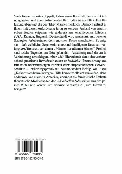 Dieser Essay behandelt das Phanomen der doppelten Belastung von Frauen, die zugleich "ihren" Haushalt in Ordnung halten und einem "normalen" Beruf nachgehen (wollen/miissen).Er konzentriert sich auf zwei Seiten einer dialektischen Situation: einmal das naheliegende Faktum, daB eine zweifache Belastung die Arbeitshetze intensiviert, den StreB intensiviert und die freie Zeit so weit "auffriBt", daB ein humanes Leben ausgeschlossen bleibt: die Not der Tugend; zum andern der weniger leicht zugangliche, gleichwohl reale Sachver halt, daB Belastungen auch Herausforderungen darstellen, Bewiih rungs proben mit der Chance zu personlicher Entwicklung und strate gischer Entfaltung: die Tugend der Not. Beide Seiten gehOren untrennbar zusammen. Wie ihr Verhaltnis im einzel nen verlauft, ist eine offene Frage. Vermutlich folgt es jener "Laffer-Kur ve", die einige Zeit lang in der wirtschaftswissenschaftlichen Diskussion eine Rolle spielte: d.h., bis zu einem gewissen Maximum fordern zusatzli che Belastungen die Entfaltung der Personlichkeit; was dariiber hinausgeht, lost regressive Veranderungen aus. Den Umschlagpunkt galte es theoretisch zu bestimmen und praktisch zu stabilisieren.