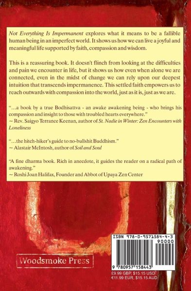 "...a book by a true Bodhisattva - an awake awakening being - who brings his compassion and insight to those with troubled hearts everywhere." ~ Rev. Saigyo Terrance Keenan, author of St. Nadie in Winter: Zen Encounters with Loneliness "...the hitch-hiker's guide to no-bullshit Buddhism." ~ Alastair McIntosh, author of Soil and Soul "A fine dharma book. Rich in anecdote, it guides the reader on a radical path of awakening." ~ Roshi Joan Halifax, Founder and Abbot of Upaya Zen Center 'Not Everything Is Impermanent' explores what it means to be a fallible human being in an imperfect world. It shows us how we can live a joyful and meaningful life supported by faith, compassion and wisdom. David Brazier points to the mystical core of Buddhism by bringing together the devotional heart teachings of Pureland and the paradoxical wisdom of Zen. His writings are grounded in a sound understanding of Buddhist doctrine, decades of spiritual practice and experience, and an ease in speaking to ordinary people about the problems we all encounter in our everyday lives. This is a book for theperson swimming through the ocean of samsara, calling out for light and assistance. It encourages us to look deeply and fearlessly beyond our immediate concerns and to aspire towards becoming true Bodhisattvas. The author is not afraid of controversy. Along the way he presents a critique of mindfulness and reinterpretations of some classic Buddhist teachings. His arguments are presented robustly, and we are encouraged to enjoy the debate and to agree or disagree with equal passion. Above all, this is a reassuring book. It doesn't flinch from looking at the difficulties and pain we encounter in life, but it shows us how even when alone we are connected, even in the midst of change we can rely upon our deepest intuition that transcends impermanence. This settled faith empowers us to reach outwards with compassion into the world, just as it is, just as we are. As he says, "At the core of all is love."