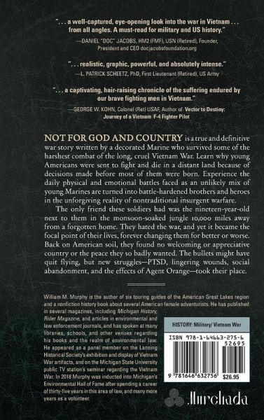 Not for God and Country is a true and definitive war story written by a decorated Marine who survived some of the harshest combat of the long, cruel Vietnam War. Learn why young Americans were sent to fight and die in a distant land because of decisions made before most of them were born. Experience the daily physical and emotional battles faced as an unlikely mix of young Marines are turned into battle-hardened brothers and heroes in the unforgiving reality of nontraditional insurgent warfare. The only friend these soldiers had was the nineteen-year-old next to them in the monsoon-soaked jungle 10,000 miles away from a forgotten home. They hated the war, and yet it became the focal point of their lives, forever changing them for better or worse. Back on American soil, they found no welcoming or appreciative country or the peace they so badly wanted. The bullets might have quit flying, but new struggles-PTSD, lingering wounds, social abandonment, and the effects of Agent Orange-took their place.
