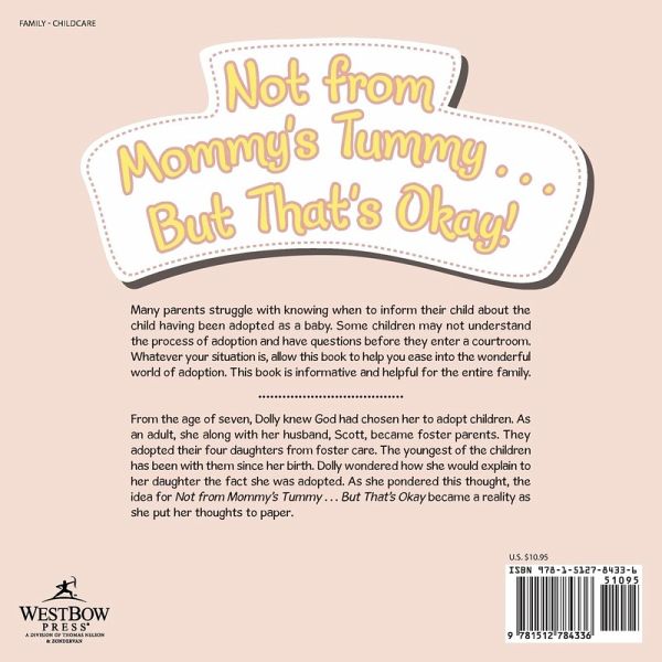 Many parents struggle with knowing when to inform their child about the child having been adopted as a baby. Some children may not understand the process of adoption and have questions before they enter a courtroom. Whatever your situation is, allow this book to help you ease into the wonderful world of adoption. This book is informative and helpful for the entire family.