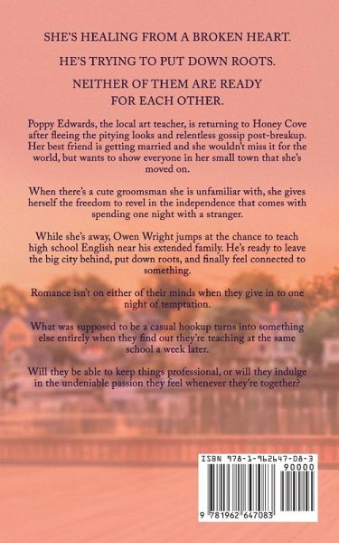 She's healing from a broken heart. He's trying to put down roots. Neither of them are ready for each other. Poppy Edwards, the local art teacher, is returning to Honey Cove after fleeing the pitying looks and relentless gossip post-breakup. Her best friend is getting married and she wouldn't miss it for the world, but wants to show everyone in her small town that she's moved on. When there's a cute groomsman she is unfamiliar with, she gives herself the freedom to revel in the independence that comes with spending one night with a stranger. While she's away, Owen Wright jumps at the chance to teach high school English near his extended family. He's ready to leave the big city behind, put down roots, and finally feel connected to something. Romance isn't on either of their minds when they give in to one night of temptation. What was supposed to be a casual hookup turns into something else entirely when they find out they're teaching at the same school a week later. Will they be able to keep things professional, or will they indulge in the undeniable passion they feel whenever they're together? Not From Out of Town is a spicy, small town, workplace standalone romance.