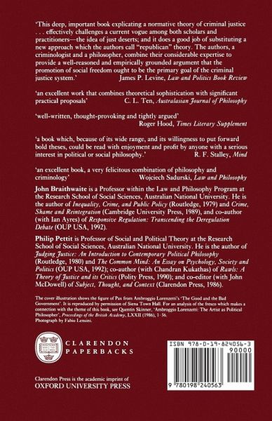 Introducing a radical shift in the research agenda of criminology, Braithwaite and Pettit here attack currently fashionable retributivist theories of punishment, arguing that the criminal justice system is so integrated that sentencing policy has to be considered in the system-wide context. They offer a comprehensive theory of criminal justice which points the way to practical intervention in the real world of incremental reform, and argue for a republican criminal justice system where the maximizing of individual dominion is set as the goal for progressive policy change.