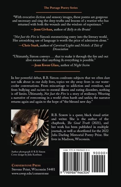 In her powerful debut, R.B. Simon confronts subjects that we often dare not talk about in our daily lives, topics we shy away from in our water-cooler conversations. From miscarriage to addiction and overdose, and from bullying and racism to mental illness and eating disorders, nothing is off limits. Ultimately, Not Just the Fire is a story of resiliency. Weaving a narrative of overcoming in a world often harsh and unfair, the narrator returns again and again to the hope of "the blessed new day."