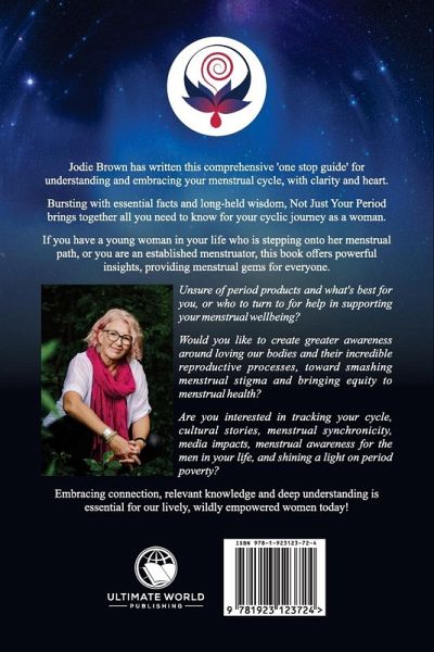 Jodie Brown has written this comprehensive 'one stop guide' for understanding and embracing your menstrual cycle, with clarity and heart. Bursting with essential facts, refreshing ideas and long-held wisdom, Not Just Your Period brings together all you need to know for your cyclic journey as a woman. If you have a young woman in your life who is stepping onto her menstrual path, or you are an established menstruator, this book offers powerful insights, providing menstrual gems for everyone. Unsure of period products and what's best for you, or who to turn to for help in supporting your menstrual wellbeing? Would you like to create greater awareness around loving our bodies and their incredible reproductive processes, toward smashing menstrual stigma and bringing equity to menstrual health? Are you interested in tracking your cycle, cultural stories, menstrual synchronicity, media impacts, menstrual awareness for the men in your life, and shining a light on period poverty? Embracing connection, relevant knowledge and deep understanding is essential for our lively, wildly empowered women today!