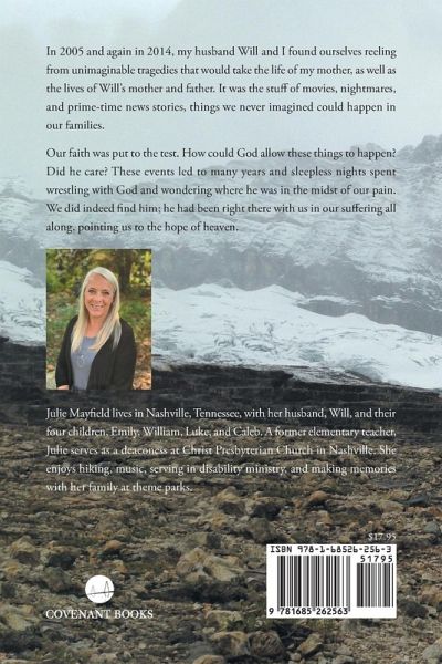 In 2005 and again in 2014, my husband Will and I found ourselves reeling from unimaginable tragedies that would take the life of my mother, as well as the lives of Will's mother and father. It was the stuff of movies, nightmares, and prime-time news stories, things we never imagined could happen in our families. Our faith was put to the test. How could God allow these things to happen? Did he care? These events led to many years and sleepless nights spent wrestling with God and wondering where he was in the midst of our pain. We did indeed find him; he had been right there with us in our suffering all along, pointing us to the hope of heaven.