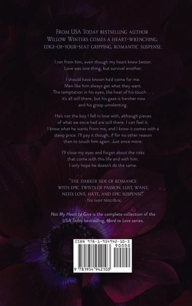 From USA Today bestselling author Willow Winters comes a heart-wrenching, edge-of-your-seat gripping, romantic suspense. I ran from him, even though my heart knew better. Love was one thing, but survival another. I should have known he'd come for me. Men like him always get what they want. The temptation in his eyes, the heat of his touch . . . it's all still there, but his gaze is harsher now and his grasp unrelenting. He's not the boy I fell in love with, although pieces of what we once had are still there. I can feel it. I know what he wants from me, and I know it comes with a steep price. I'll pay it though, if for no other reason than to touch him again. Just once more. I'll close my eyes and forget about the risks that come with this life and with him. I only hope he doesn't do the same. "...the darker side of romance with epic twists of passion, lust, want, need, love, hate and epic suspense!" - The Sass Nerd BlogNot Not My Heart to Break is the complete collection of the USA Today bestselling, Hard to Love series.