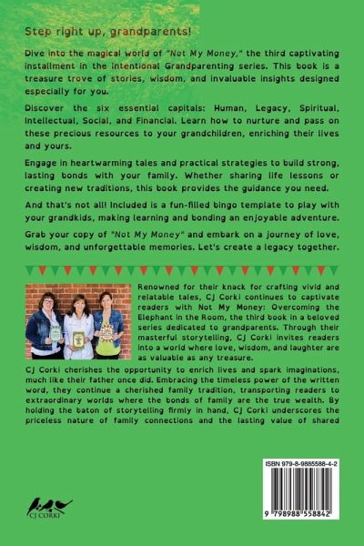 Dear Grandparents, We are thrilled to introduce you to "Not My Money," the third captivating installment in the Intentional Grandparenting series. This remarkable book is a treasure trove filled with heartwarming anecdotes, timeless wisdom, and invaluable perspectives tailored specifically for you. Within its pages, you will embark on a journey to explore the six essential capitals: Human, Legacy, Spiritual, Intellectual, Social, and Financial. Discover the secrets to nurturing and passing on these precious resources to your grandchildren, thereby enriching both their lives and your own. Prepare to immerse yourself in an enchanting world of heartwarming stories and practical strategies designed to foster enduring and profound connections with your family. Whether you are sharing life lessons or creating new family traditions, this book offers the guidance and inspiration you seek. But that's not all! "Not My Money" also includes a delightful bingo template for you to enjoy with your grandkids, transforming learning and bonding into a joyous escapade. Additionally, it features an activities worksheet designed to stimulate deeper conversations and connections. These resources will help you create lasting memories and strengthen the bonds with your beloved grandchildren. We can't wait for you to delve into the enchanting universe of "Not My Money" and experience all the joy, wisdom, and connection it has to offer. Happy reading and bonding!