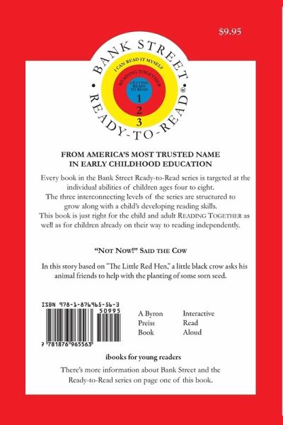 ¿About¿The¿Bank¿Street Ready-To-Read Series More than seventy years of educational research and innovative teaching have given the Bank Street College of Education the reputation as America’s most trusted name in early childhood education. Because no two children are exactly alike in their development, we have designed the Bank Street Ready-to-Read series in three levels to accommodate the individual stages of reading readiness of children ages four through eight. • Level 1: Getting Ready To Read— (Pre-K to Grade 1) Books are perfect for reading aloud with children who are getting ready to read or are just beginning to read words or phrases. • Level 2: Reading Together—(Grades 1 to 3) Books are written especially for children who are on their way to reading independently but who may need help. • Level 3: I Can Read It Myself—(Grades 2 to 3) Books are designed for children able to read on their own. They also can be enjoyed as read-alouds. Our three levels make it easy to select the books most appropriate for a child’s development and enable him or her to grow with the series step by step. The Bank Street Ready-to-Read books also overlap and reinforce each other, further encouraging the reading process. We feel that making reading fun and enjoyable is the single most important thing that you can do to help children become good readers. And we hope you’ll be a part of Bank Street’s long tradition of learning through sharing. —The Bank Street College of Education "Not Now!" Said the Cow In this story based on "The Little Red Hen," a little black crow asks his animal friends to help with the planting of some sorn seed.