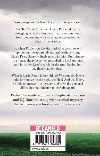 Poor judgements have tragic consequences... The latest in the unputdownable Teifi Valley series The Teifi Valley's coroner, Harry Probert-Lloyd, is struggling: with the blindness that drove him home from London, with the county magistrates and with an estate teetering on the edge of bankruptcy. He needs an escape, so when Dr Benton Reckitt is asked to give a second opinion on the apparently natural death of young Lizzie Rees, Harry willingly goes with him. But mistakes are made. Harry becomes embroiled in local rumours and in Esther Rees's search for the truth behind her daughter's sudden death. What is Lizzie Rees's father hiding? Was somebody else in the farmhouse on the night she died? And, most crucially for Harry, will he be able to uncover the mystery, and solve personal difficulties that threaten to tear him apart? Perfect for readers of Laura Shephard-Robinson, Stuart Turton or Elly Griffiths, this is a superb historical mystery that will keep you hooked until the very end.