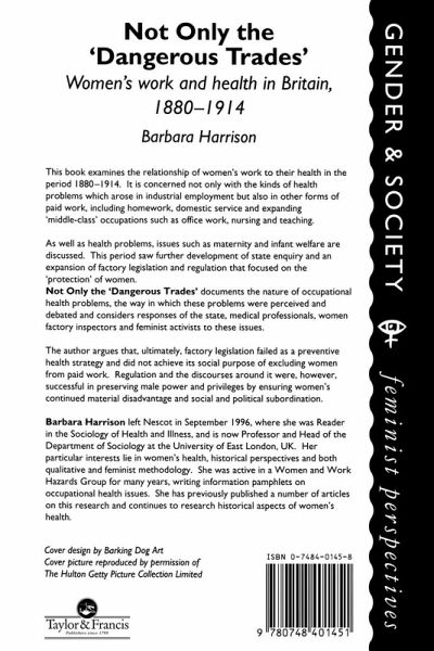 Using original research and focusing on occupational ill-health in relation to women workers, this book presents a perspective for the analysis of both gender and work and work and ill-health. The author gives a critique of traditional theoretical accounts of gender relations, state intervention and industrial ill-health. The chapters examine the extent to which feminist activists got involved in debates about health and industrial work, and show how activists went beyond the concerns of suffrage.; The book presents a historical period which was marked by a change in the role of the state with respect to intervention in industrial conditions, and analyses the coincidence of this with three other significant developments: the growth of expertise in industrial disease; the employment of women in the factory to take on responsibilities in relation to other women; and changes in the direction of feminist activism. In light of this analysis, the author suggests that some theoretical approaches to both gender relations and health and safety requirements require modification.