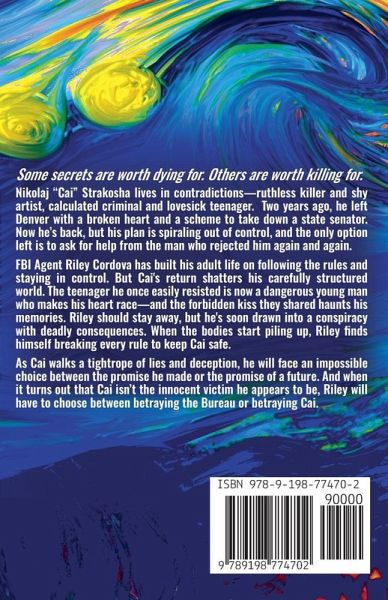 Some secrets are worth dying for. Others are worth killing for. Nikolaj "Cai" Strakosha lives in contradictions-ruthless killer and shy artist, calculated criminal and lovesick teenager. Two years ago, he left Denver with a broken heart and a scheme to take down a state senator. Now he's back, but his plan is spiraling out of control, and the only option left is to ask for help from the man who rejected him again and again. FBI Agent Riley Cordova has built his adult life on following the rules and staying in control. But Cai's return shatters his carefully structured world. The teenager he once easily resisted is now a dangerous young man who makes his heart race. And the forbidden kiss they shared haunts his memories. Riley should stay away, but he's soon drawn into a conspiracy with deadly consequences. When the bodies start piling up, Riley finds himself breaking every rule to keep Cai safe. As Cai walks a tightrope of lies and deception, he will face an impossible choice between the promise he made or the promise of a future. And when it turns out that Cai isn't the innocent victim he appears to be, Riley will have to choose between betraying the Bureau or betraying Cai.
