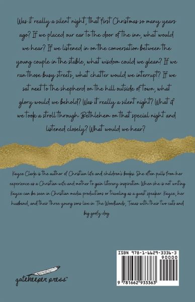 Christmas. The night of Jesus Christ's birth. What sounds were there on that "silent night" oh so long ago? Was the inn keeper's mind reverberating with sounds coming from the overflowing rooms? Could a little boy in town hear the rustle of the animals in the stable surrounding the baby Jesus? Did Joseph's ears ring with praise, or worry, or a little of both? Journey to Bethlehem on the night of Jesus' birth, and listen for the sounds that call us to remember the gift he brought to every human heart-the sounds of that, perhaps, not so silent night.