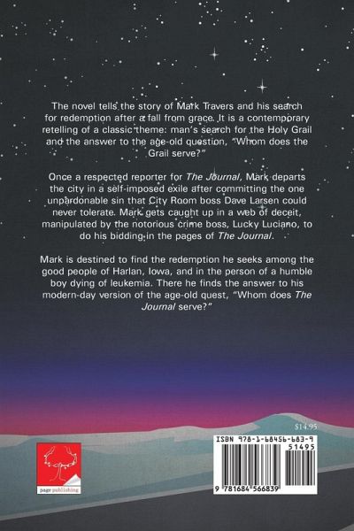 The novel tells the story of Mark Travers and his search for redemption after a fall from grace. It is a contemporary retelling of a classic theme: man's search for the Holy Grail and the answer to the age-old question, "Whom does the Grail serve?" Once a respected reporter for The Journal, Mark departs the city in a self-imposed exile after committing the one unpardonable sin that City Room boss Dave Larsen could never tolerate. Mark gets caught up in a web of deceit, manipulated by the notorious crime boss, Lucky Luciano, to do his bidding in the pages of The Journal. Mark is destined to find the redemption he seeks among the good people of Harlan, Iowa, and in the person of a humble boy dying of leukemia. There he finds the answer to his modern-day version of the age-old quest, "Whom does The Journal serve?"