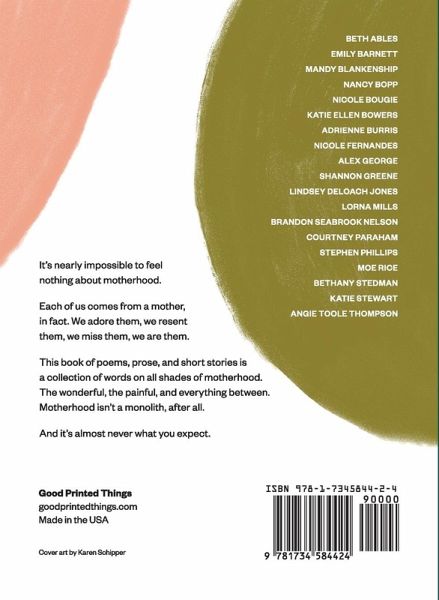 Nineteen writers share poems, prose, and short stories capturing the wonderful, the painful, and everything between. It's nearly impossible to feel nothing about motherhood. Each of us comes from a mother, in fact. We adore them, we resent them, we miss them, we are them. This book of poems, prose, and short stories is a collection of words on all shades of motherhood. The wonderful, the painful, and everything between. Motherhood isn't a monolith, after all. And it's almost never what you expect. Contributors: Beth Ables Emily Barnett Mandy Blankenship Nancy Bopp Nicole Bougie Katie Ellen Bowers Adrienne Burris Nicole Fernandes Alex George Shannon Greene Lindsey DeLoach Jones Lorna Mills Brandon Seabrook Nelson Courtney Paraham Stephen Phillips Moe Rice Bethany Stedman Katie Stewart Angie Toole Thompson