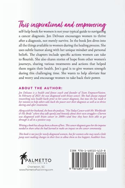This inspirational and empowering self-help book for women is not your typical guide to navigating a cancer diagnosis. Jen Delvaux encourages women to thrive after a diagnosis, not merely survive. In the book Jen dives into all the things available to women during the healing process. She uses subtle humor along with her unique mindset and personal beliefs. The chapters include specific actions women can take to flourish. She also shares stories of hope from other women's journeys, sharing various treatments and actions that helped them regain their health. Jen's goal is to give women strength during this challenging time. She wants to help alleviate fear and worry and encourage women to take back their power.