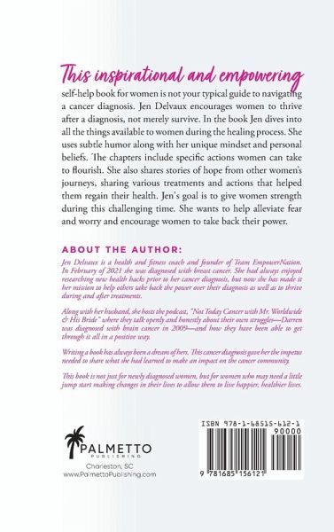 This inspirational and empowering self-help book for women is not your typical guide to navigating a cancer diagnosis. Jen Delvaux encourages women to thrive after a diagnosis, not merely survive. In the book Jen dives into all the things available to women during the healing process. She uses subtle humor along with her unique mindset and personal beliefs. The chapters include specific actions women can take to flourish. She also shares stories of hope from other women's journeys, sharing various treatments and actions that helped them regain their health. Jen's goal is to give women strength during this challenging time. She wants to help alleviate fear and worry and encourage women to take back their power.