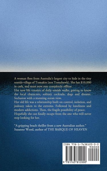 A woman flees from Australia's largest city to hide in the tiny seaside village of Tomakin (not Tomahawk). She has $10,000 in cash, and must now stay completely offline.Her new life consists of daily seaside walks, getting to know the local characters, solitary cocktails, dogs and dreams. Seclusion with a stunning ocean view.Her old life was a relationship built on control, isolation, and jealousy taken to the extreme. Followed by loneliness and modern addictions. Then, the fragile possibility of peace.Hopefully she can finally escape from the one who will never stop looking for her.
