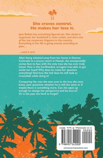 She craves control. He makes her lose it. Jane Robins has everything figured out. Her closet is organized, her bookshelf is color-coded, and she's one of the top corporate litigators in the country. Everything in her life is going exactly according to plan... ...until it isn't. After being whisked away from her home in Denver, Colorado to a luxury resort in Hawaii, she unexpectedly comes face to face with the only man she has ever truly hated. How is this hardheaded, arrogant man able to get inside her head? How is he able to make her question everything? And how the hell does he still look so irresistible while doing it? Comparing the man she sees now to the boy she once knew, Jane questions whether he is still the same or if maybe there is something more. Can she open up enough to change her perspective and let love in? Or is the past too hard to forget?