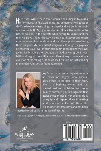 Here it is; I wrote these three words when I began to journal on my quest to find God in my life. Sometimes we question God's existence when things get hard and we begin to doubt our level of faith. My goal was to find Him active in the victories, as well as, in the defeats while trying to understand the role He plays. Along th eway, I began to discover and recognize the saves He extends to us all and the importance of using them for good. My hope is that you journal through the pages in discovering your level of faith and begin to recognize the saves given. It's bringing the spotlight on God as you grow in your faith; you begin to see Him in a different way. It was a simple question of me asking if He could see little 'ole me just standing in the road. And, what I found is, He did.