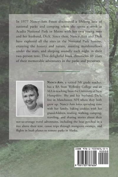 In 1977 Nancy-Ann Feren discovered a lifelong love of national parks and camping when she spent a week at Acadia National Park in Maine with her two young sons and her husband, Dick. Since then, Nancy-Ann and Dick have explored all the sites in the National Park System, enjoying the history and nature, roasting marshmallows under the stars, and sleeping soundly each night in their two-person tent. This delightful book chronicles 40 years of their memorable adventures in the parks and preserves.