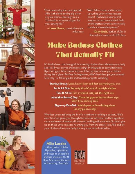 Tailor your wardrobe to fit your size, shape and sensibilities with Allie Luecke's ultimate guide to easy clothing alterations. Allie breaks down intimidating sewing techniques by giving detailed instructions for the most needed garment upgrades: hemming dragging pant legs, cropping outdated tees, upsizing gaping button-ups, cinching dresses, adding plentiful pockets and functional zippers and more. Screw unattainable sizes or unflattering designs; regardless of size or shape, Allie's approachable alteration hacks will have every garment in your closet fitting perfectly. This isn't your grandmother's dusty old sewing manual - Allie's humorous voice, trending style and understanding of upcycling truly make this a modern sewing bible. Size-inclusive and budget-friendly, this book focuses on making the old new again to avoid fashion faux-pas and wasteful fast fashion. Whether you're adjusting a tried-and-true favorite that might be a bit too snug now or making your latest thrifted treasure fit like a glove, Allie's tutorials will have you saving time, money and the planet.