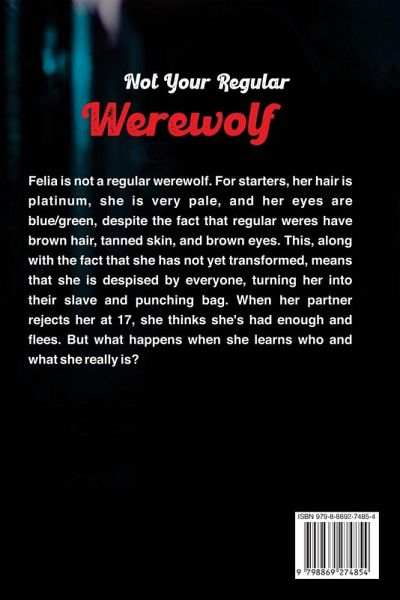 Felia is not a regular werewolf. For starters, her hair is platinum, she is very pale, and her eyes are blue/green, despite the fact that regular weres have brown hair, tanned skin, and brown eyes. This, along with the fact that she has not yet transformed, means that she is despised by everyone, turning her into their slave and punching bag. When her partner rejects her at 17, she thinks she's had enough and flees. But what happens when she learns who and what she really is?