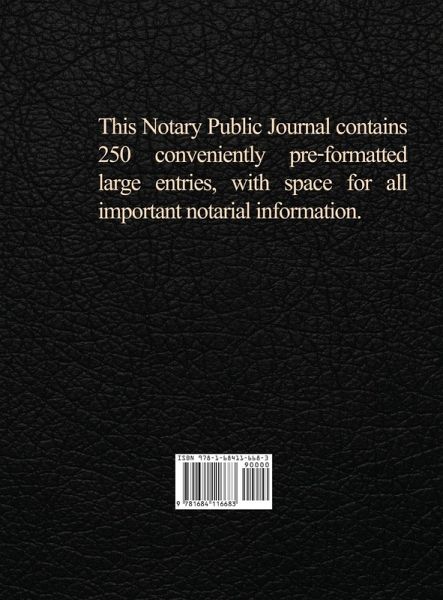 A Notary Public Journal , it is an important tool that provides a written record of the Notary's official acts. It contains details of the transaction in the event a notarized document is lost, altered, or if facts concerning the notarization are challenged in court. This Notary Public Journal contains 250 conveniently pre-formatted large entries, with space for all important notarial information.