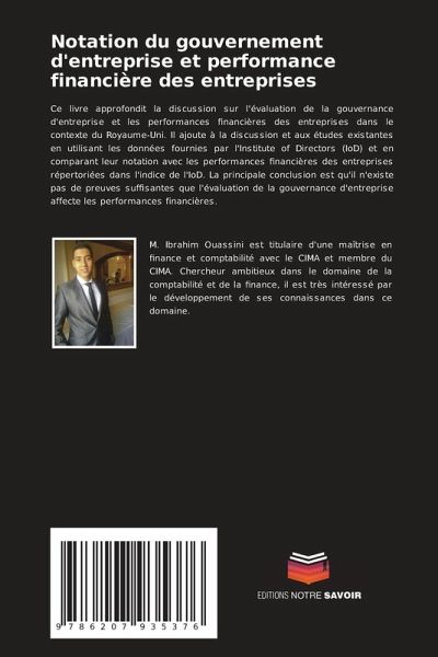 Ce livre approfondit la discussion sur l'évaluation de la gouvernance d'entreprise et les performances financières des entreprises dans le contexte du Royaume-Uni. Il ajoute à la discussion et aux études existantes en utilisant les données fournies par l'Institute of Directors (IoD) et en comparant leur notation avec les performances financières des entreprises répertoriées dans l'indice de l'IoD. La principale conclusion est qu'il n'existe pas de preuves suffisantes que l'évaluation de la gouvernance d'entreprise affecte les performances financières.