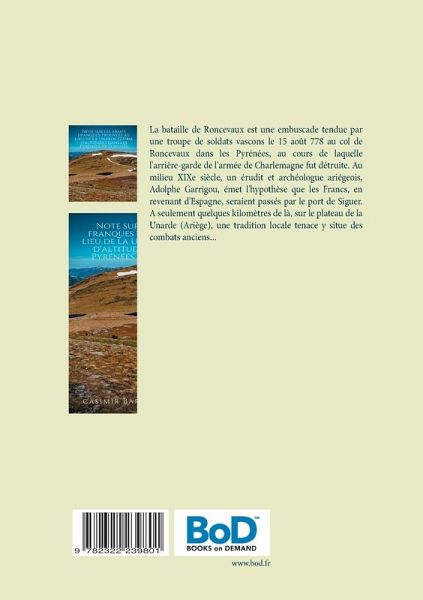 La bataille de Roncevaux, rendue célèbre par la Chanson de Roland, est une embuscade tendue par une troupe de soldats vascons le 15 août 778 au col de Roncevaux dans les Pyrénées, au cours de laquelle l'arrière-garde de l'armée de Charlemagne, de retour de Saragosse, fut détruite. Comme aucune trace archéologique n'a jamais été trouvée des combats, le lieu de la bataille reste inconnu.Diverses hypothèses ont été émises selon lesquelles le combat n'a pas seulement été situé à proximité du col de Roncevaux mais tout au long de la chaîne pyrénéenne, depuis le Pays basque jusqu'à la Catalogne. Au milieu XIXe siècle, un archéologue ariégeois, Adolphe Garrigou, émet l'hypothèse que des Francs, en revenant d'Espagne, seraient passés, entre autres lieux, par le port de Siguer actuel correspondant au "porz de Sizer" évoqué dans le chanson de Roland, et situé aujourd'hui à la frontière entre la France et l'Andorre. De tout temps, le port de Siguer a, en effet, constitué un passage évident vers les pays hispaniques, pour le commerce et la contrebande. Coïncidence, à seulement quelques kilomètres de là, sur le plateau de la Unarde (Ariège), une tradition locale tenace y situe des combats anciens... Quelques années plus tard, un autre archéologue, Casimir Barrière-Flavy, poursuit les travaux de Garrigou et entreprend des fouilles méthodiques qui permettent, en 1894, de sortir de terre deux autres armes dont la ressemblance avec des armes franques alors conservées dans les musées français s'avère troublante. Pour les érudits qui ont cherché à localiser Roncevaux, la Unarde, plus qu'une bataille en règle, aurait plutôt été le théâtre d'une escarmouche entre quelques poursuivants et fuyards pris au piège du haut-plateau. Sans prêter au sensationnalisme ni aux conclusions hâtives, cette reproduction du rapport de fouilles de Casimir Barrière-Flavy qui fit l'objet d'une communication devant la Société archéologique du midi de la France dans sa séance du 20 décembre 1893 et fit l'objet d'une édition chez Privat à Toulouse l'année suivante, se veut avant tout une pièce à apporter à la connaissance de l'archéologie militaire pyrénéenne du haut Moyen-Age et à la façon dont elle se pratiquait au XIXe siècle par les sociétés savantes locales.