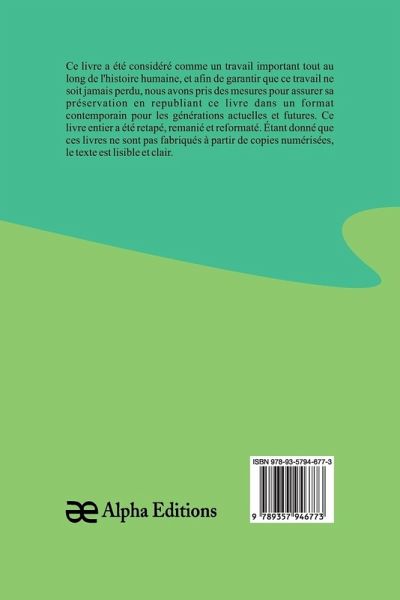 Notes de Voltaire et de Condorcet sur les pensées de Pascal, est un livre classique et rare, qui a été considéré comme important tout au long de l'histoire de l'humanité, et pour que cet ouvrage ne soit jamais oublié, chez Alpha Editions, nous avons fait des efforts pour sa préservation en rééditant ce livre dans un format moderne pour les générations présentes et futures. . Tout ce livre a été reformaté, retapé et repensé. Ces livres ne sont pas constitués de copies numérisées de leur ¿uvre originale et leur texte est donc clair et lisible. Ce volume remarquable s'inscrit dans les genres de Philosophy, Psychology, Religion