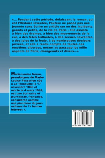 ... Pendant cette période, délaissant le roman, qui est l'Histoire inventée, l'auteur ne passa pas une journée sans écrire un article sur un des incidents, grands et petits, de la vie de Paris ; elle assista à bien des drames, à bien des mouvements de la rue, à des fêtes brillantes, à des scènes navrantes, à des joies de la foule, à de nombreuses douleurs privées, et elle a rendu compte de toutes ces émotions diverses, notant au passage les mille aspects de Paris, changeants et divers...