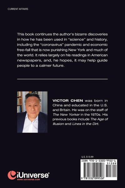 This book continues the author's bizarre discoveries in how he has been used in "science" and history, including the "coronavirus" pandemic and economic free-fall that is now punishing New York and much of the world. It relies largely on his readings in American newspapers, and, he hopes, it may help guide people to a calmer future.