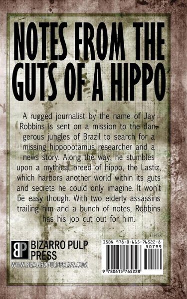 A rugged journalist by the name of Jay Robbins is sent on a mission to the dangerous jungles of Brazil to search for a missing hippopotamus researcher and a news story. Along the way, he stumbles upon a mythical breed of hippo, the Lastiz, which harbors another world within its guts and secrets he could only imagine. It won't be easy though. With two elderly assassins trailing him and a bunch of notes, Robbins has his job cut out for him.