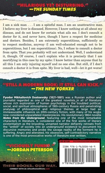 Fyodor Mikhailovich Dostoevsky (1821-1881) was a Russian author and journalist regarded as one of the greatest novelists in all of literature whose rich exploration of human psychology in the troubled political, social, and spiritual atmospheres of 19th-century Russia and penetrating analyses of philosophical and religious themes at large had an immeasurable influence on 20th-century fiction, with many of his works now considered unparalleled masterpieces. His revolutionary 1864 novella Notes from the Underground, featuring one of the most remarkable characters in literature, is considered one of the first works of literary existentialism whose brooding, unnamed narrator defiantly retreats from the "anthill" of society into an underground existence to document his discursive memories and probe the savage truth of the torment he is suffering. Angry and alienated, his obsessive, self-contradictory narrative is one of the most provocative works of literature ever written.