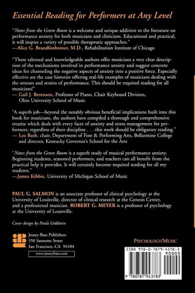 Essential Reading for Performers at Any Level "Notes from the Green Room is a welcome and unique addition to the literature on performance anxiety for both musicians and clinicians. Educational and practical, it will inspire a variety of possible therapeutic approaches."?Alice G. Brandfonbrener, M.D., Rehabilitation Institute of Chicago "These talented and knowledgeable authors offer musicians a very clear description of the mechanisms involved in performance anxiety and suggest concrete ideas for channeling the negative aspects of anxiety into a positive force. Especially effective are the case histories offering real life examples of musicians dealing with the stresses and strains of performance. This should be required reading for all musicians!"? Gail J. Berenson, professor of piano, Chair Keyboard Division, Ohio University School of Music "A superb job? beyond the notably obvious beneficial implications built into this book for musicians, the authors have compiled a thorough and comprehensive treatise which deals with every facet of anxiety and stress management for performers, regardless of their discipline . . . this work should be obligatory reading."? Lee Bash, chair, Department of Fine & Performing Arts, Bellarmine College and director, Kentucky Governor's School for the Arts "Notes from the Green Room is a superb study of musical performance anxiety. Beginning students, seasoned performers, and teachers can all benefit from the practical help it provides. It will certainly become required reading for all my students."? James Kibbie, University of Michigan School of Music