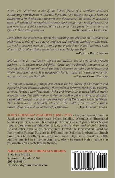 The chief feature of this volume is that it makes available in convenient form the "Notes on Biblical Exposition" which Dr. J. Gresham Machen published in the earlier 'Christianity Today' from January 1931 to February 1933. Students at Westminster Seminary have made profitable use of these Notes on Galatians 1:1 - 3:14 by following them, with minor inconveience, through bound periodical volumes; but for many others who might greatly benefit from them, they have long been inaccessible. Here you will find a master exegete opening up important and essential meterial to help undertsand the import of the great Apoostle on this vital portion of Scripture. "Machen wrote on Galatians to inform his students and to help Sunday School teachers. It is written with delightful clarity and incidentally introduces us to what Machen did very well, teach the New Testament to students at Princeton and Westminster Seminaries. It is wonderfully lucid; a pleasure to read; a model for anyone who preaches the Bible." - Geoff Thomas
