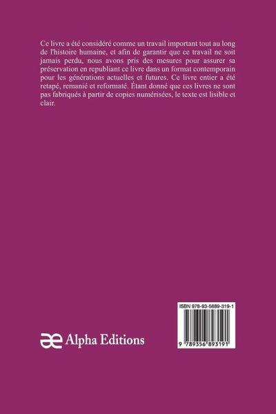Notes sur l'Amour, a été reconnu comme une ¿uvre majeure dans toute l'histoire humaine, et nous avons pris des précautions pour assurer sa préservation en rééditant ce livre de manière moderne pour les générations présentes et futures. Ce livre a été entièrement retapé, révisé et reformaté. Le texte est lisible et clair car ces livres ne sont pas créés à partir de copies numérisées.