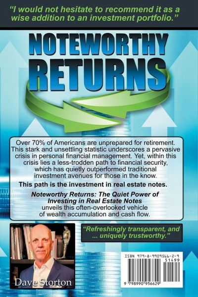 Over 70% of Americans are unprepared for retirement. This stark and unsettling statistic underscores a pervasive crisis in personal financial management. Yet, within this crisis lies a less-trodden path to financial security, which has quietly outperformed traditional investment avenues for those in the know. This path is the investment in real estate notes. Noteworthy Returns: The Quiet Power of Investing in Real Estate Notes unveils this often-overlooked vehicle of wealth accumulation and cash flow. This book will provide a launching pad for the real estate note investing world. The information contained herein will give passive note investors who wish to partner with an active expert in pursuit of passive returns a good understanding of notes and how these paper assets, backed by real estate, can provide consistent and secure returns. For those who wish to wade into deeper waters by sourcing and originating their notes, Noteworthy Returns will provide a solid foundation for becoming a more active, hands-on investor. It will also demystify the process of investing in real estate notes.